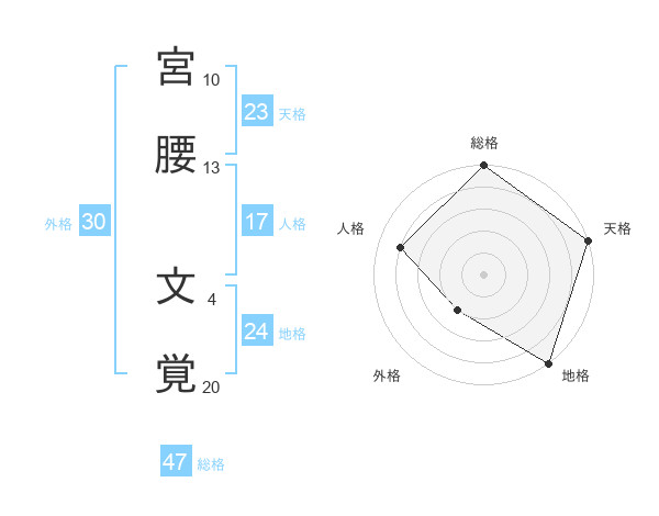 宮腰 文覚さんを姓名の画数から五運を鑑定