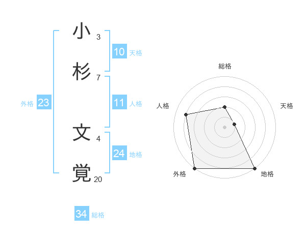小杉 文覚さんを姓名の画数から五運を鑑定