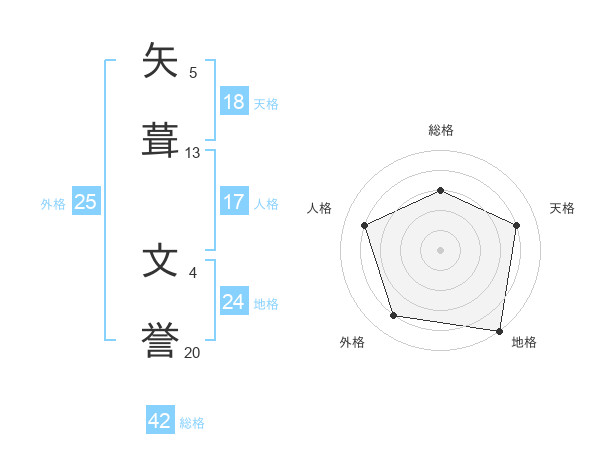 矢葺 文誉さんの総格は42画の3点!