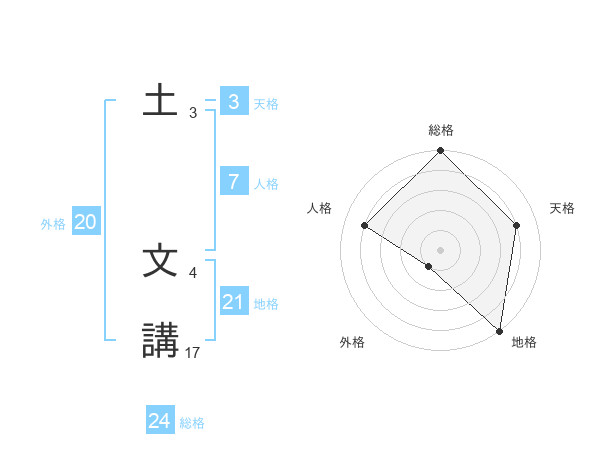 土 文講さんの総格は24画の5点!