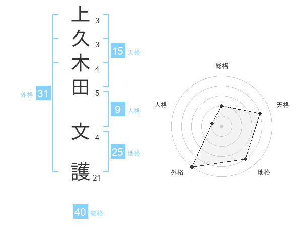 上久木田 文護さんを姓名の画数から五運を鑑定