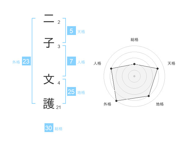 二子 文護さんの外格は23画の5点!