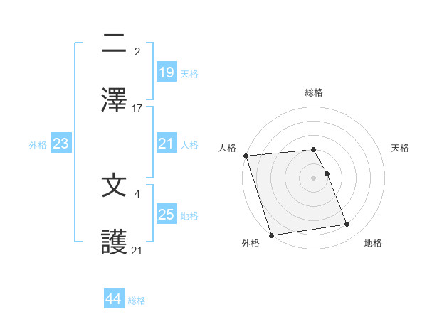 二澤 文護さんの外格は23画の5点!