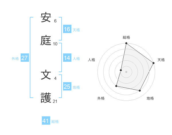 安庭 文護さんの総格は41画の5点!