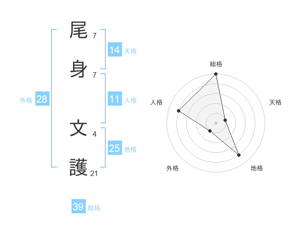 尾身 文護さんの総格は39画の5点!