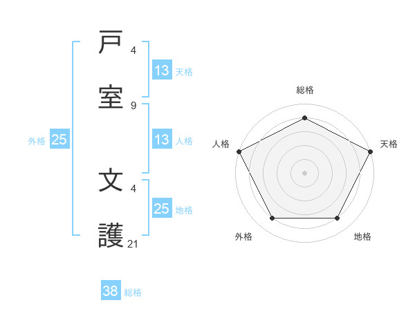 戸室 文護さんの総格は38画の4点!