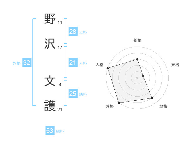野沢 文護さんの人格は21画の5点!