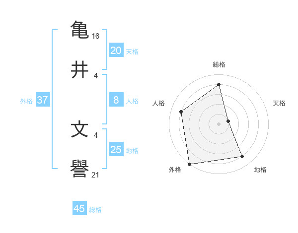 亀井 文譽さんの外格は37画の5点!