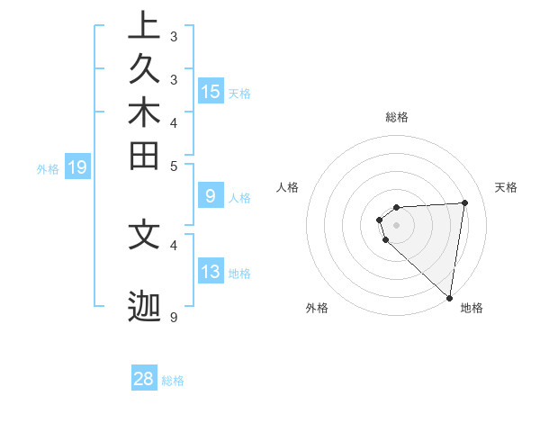 上久木田 文迦さんを姓名の画数から五運を鑑定