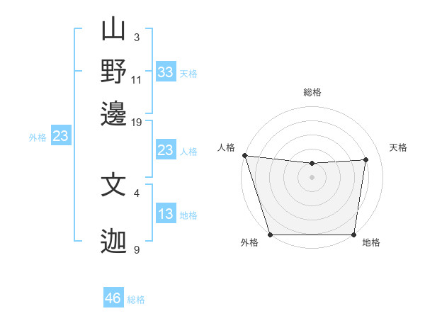 山野邊 文迦さんを姓名の画数から五運を鑑定