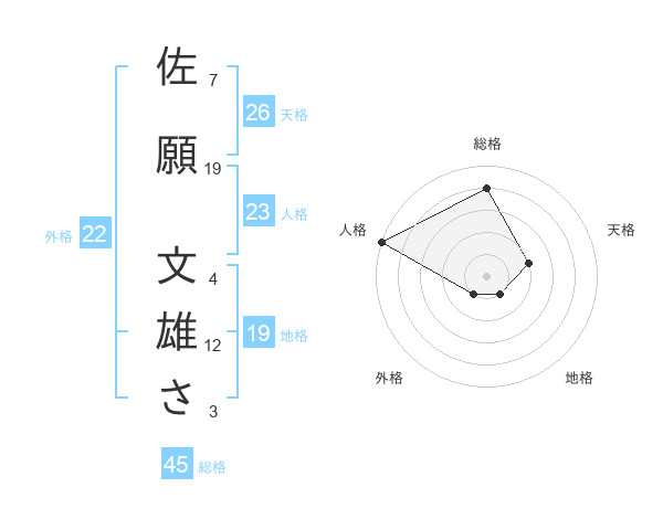 佐願 文雄ささんを姓名の画数から五運を鑑定