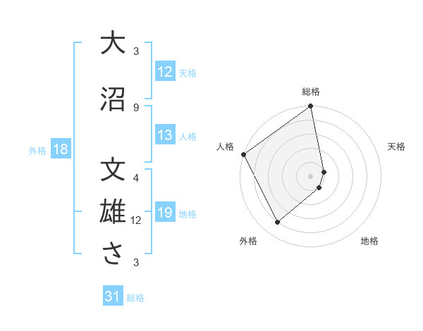 大沼 文雄ささんを姓名の画数から五運を鑑定