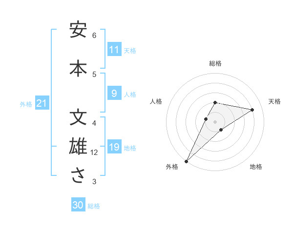 安本 文雄ささんの外格は21画の5点!