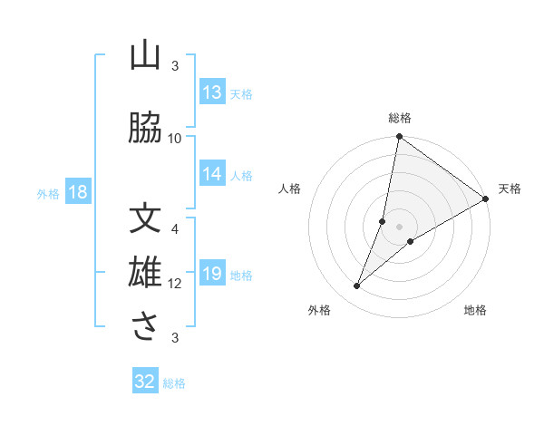 山脇 文雄ささんを姓名の画数から五運を鑑定