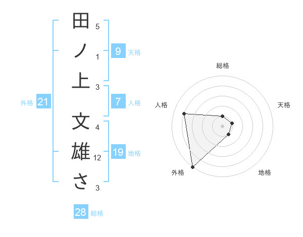 田ノ上 文雄ささんを姓名の画数から五運を鑑定
