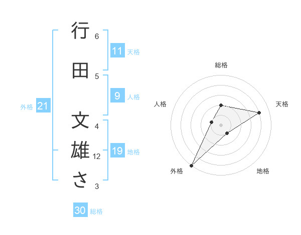 行田 文雄ささんを姓名の画数から五運を鑑定