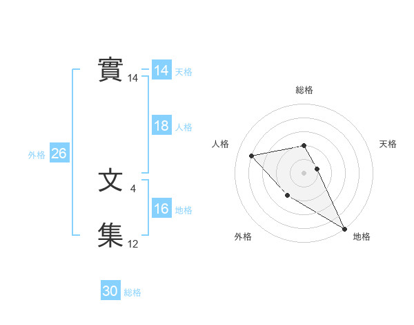 實 文集さんの天格は14画の1点!