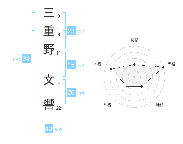 三重野 文響さんの総格は49画の2点!