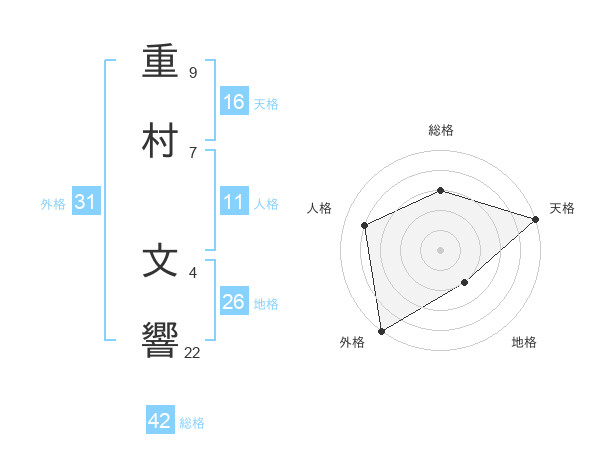 重村 文響さんの総格は42画の3点!