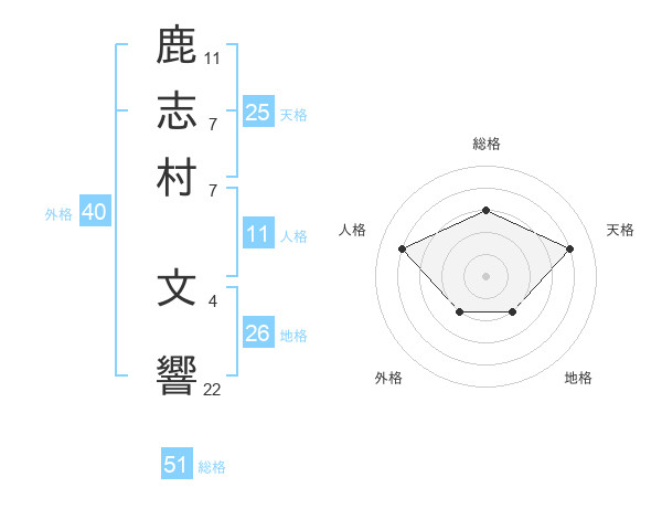 鹿志村 文響さんの総格は51画の3点!