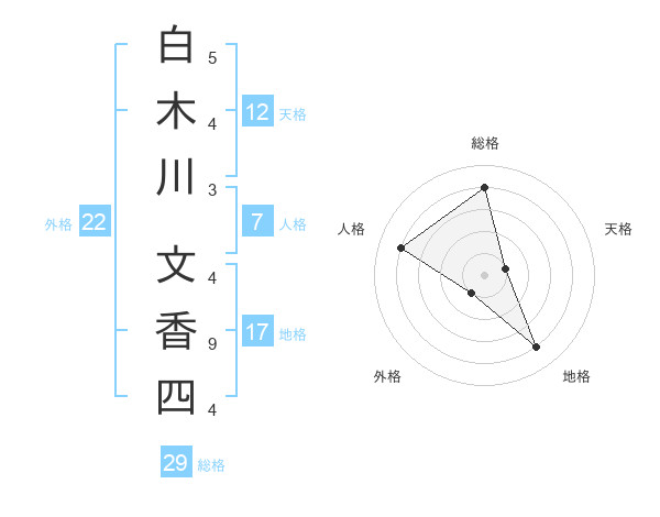 白木川 文香四さんを姓名の画数から五運を鑑定