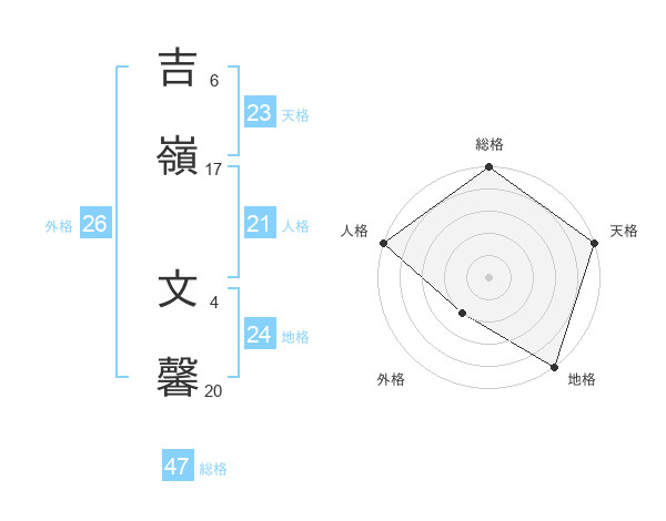 吉嶺 文馨さんを姓名の画数から五運を鑑定