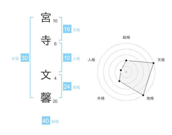 宮寺 文馨さんの総格は40画の2点!