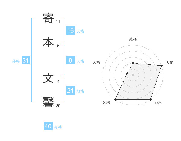 寄本 文馨さんの外格は31画の5点!