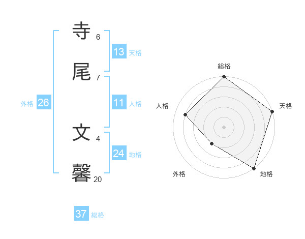 寺尾 文馨さんを姓名の画数から五運を鑑定