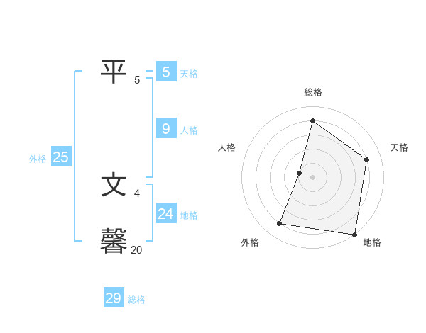 平 文馨さんの総格は29画の4点!