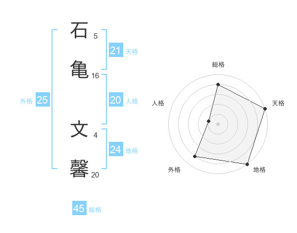 石亀 文馨さんを姓名の画数から五運を鑑定