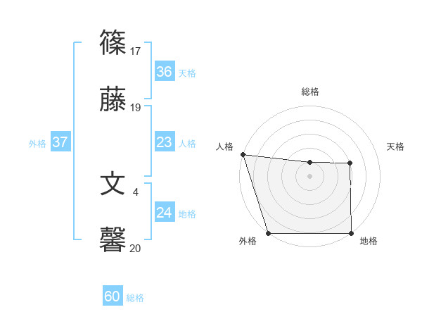 篠藤 文馨さんを姓名の画数から五運を鑑定