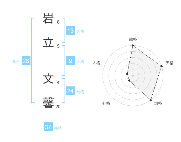 岩立 文馨さんの総格は37画の5点!