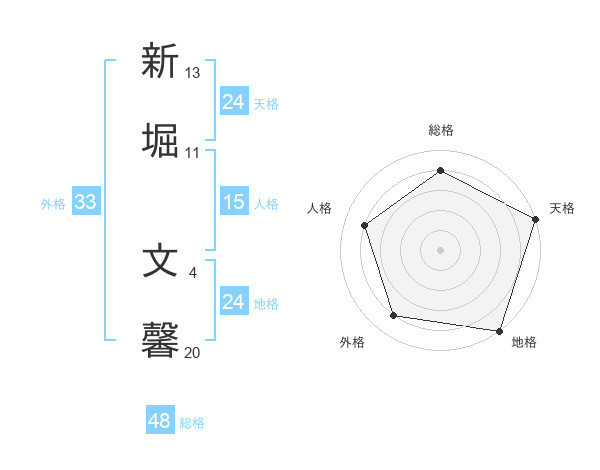新堀 文馨さんを姓名の画数から五運を鑑定
