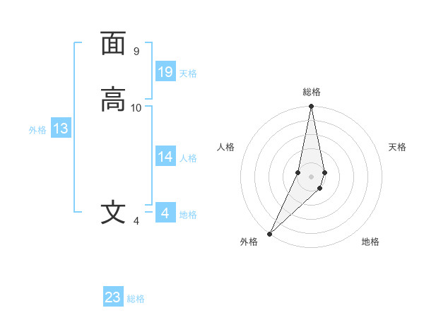 面高 文さんの外格は13画の5点!