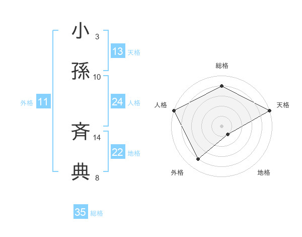 小孫 斉典さんの天格は13画の5点!