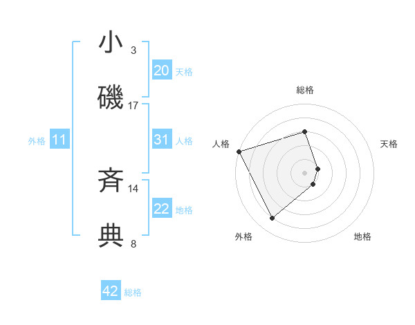 小磯 斉典さんを姓名の画数から五運を鑑定