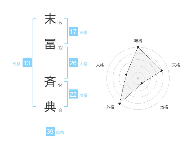 末冨 斉典さんを姓名の画数から五運を鑑定