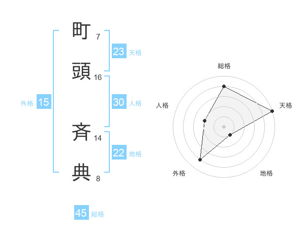 町頭 斉典さんを姓名の画数から五運を鑑定