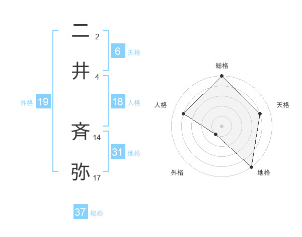 二井 斉弥さんを姓名の画数から五運を鑑定