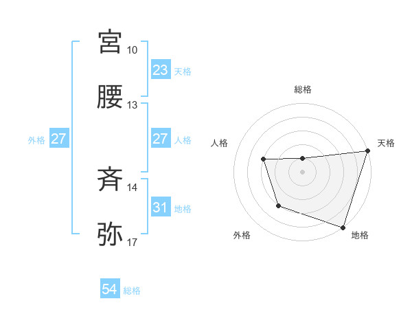 宮腰 斉弥さんを姓名の画数から五運を鑑定