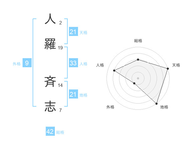 人羅 斉志さんの天格は21画の5点!