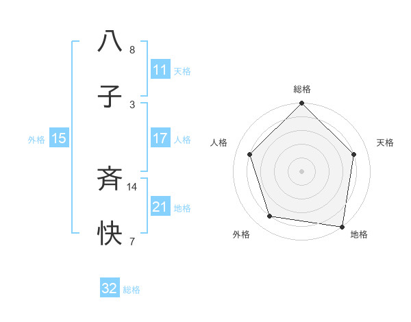 八子 斉快さんの総格は32画の5点!