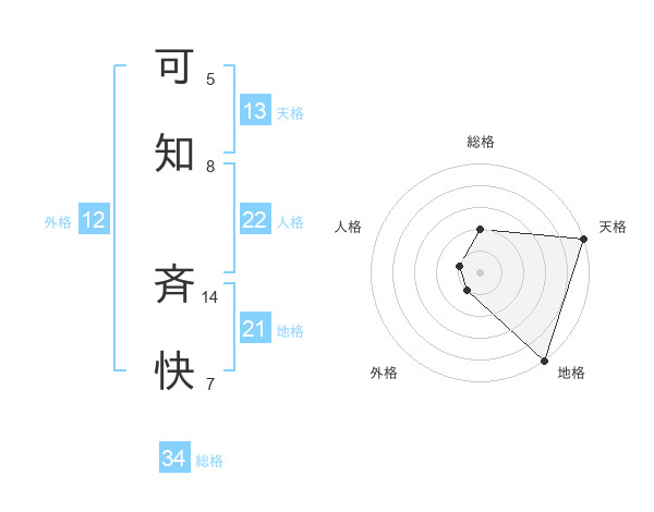 可知 斉快さんの天格は13画の5点!