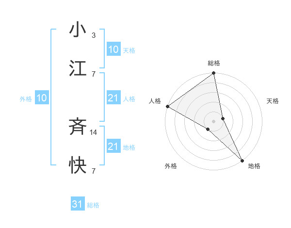 小江 斉快さんの総格は31画の5点!