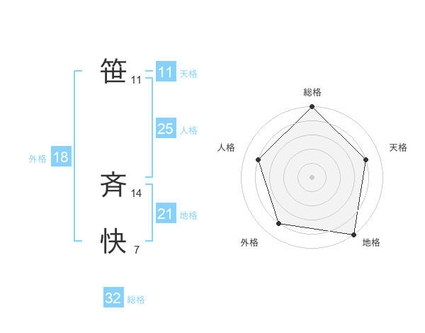 笹 斉快さんの総格は32画の5点!