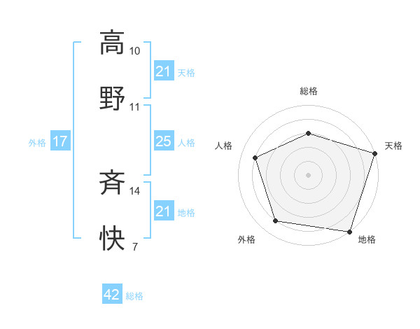 高野 斉快さんの天格は21画の5点!