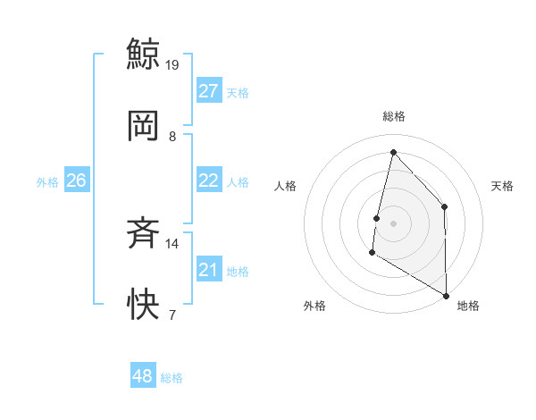 鯨岡 斉快さんの総格は48画の4点!