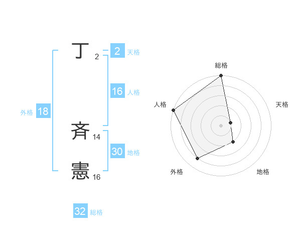 丁 斉憲さんの総格は32画の5点!
