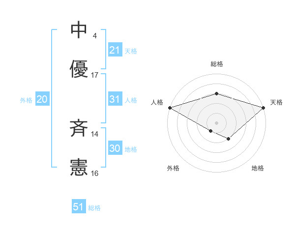 中優 斉憲さんを姓名の画数から五運を鑑定